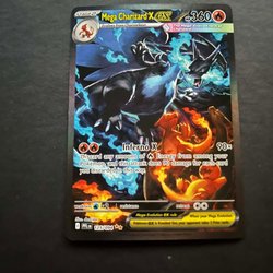 Pokemonkort med Mega Charizard X EX. Kortet är ett samlarobjekt.