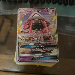 Säljer ett set med Pokemonkort. Korten är av olika typer och har olika attacker och förmågor.