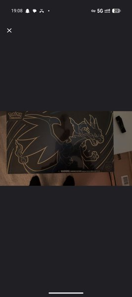 Säljer en box från Pokémon Trading Card Game. Boxen har ett motiv av Charizard.
