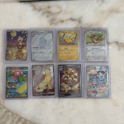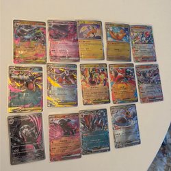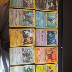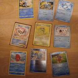 Detta är en samling Pokemonkort.