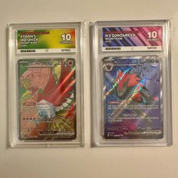 Säljer tre engelska Pokémonkort från serien Mega Evolution. Gardevoir, Lucario, Absol. Korten är graderade med 10 av ACE Grading och kortens ID är i nummerföljd. Priset är för alla tre tillsammans. Perfekt för samlaren!