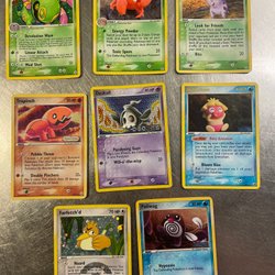 Säljer en samling Pokémonkort. Perfekt för samlare eller spelare som vill utöka sin kortlek. Innehåller olika typer av Pokémon och energikort. Har inte förvarats i plastfickor, se skick på bilderna