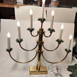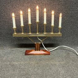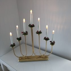 Klassisk adventsljusstake med sju ljus. Ljusstaken är i mässingsfärg och har en strömbrytare på sladden Höjd:36cm Bred:42cm*(Frakt spårbort nr)*