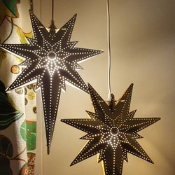 2 riktigt stora julstjärnor blåfärgade. Mycket dekorativa till ett högre fönster.