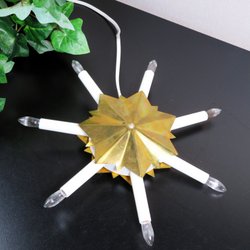 Snygg vintage, guldpläterad fönsterstjärna från Mark Slöjd i form av en sol. Lampan ger ett varmt och stämningsfullt ljus. Originalkartong medföljer.