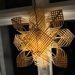 Vacker julstjärna i trä. Spånstjärna. Perfekt för att skapa julstämning i hemmet. Ca 30 cm bred. Ojordad kontakt.