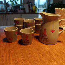 En fin liten kanna. Osäker på ursprung och material. Fin att servera exempelvis glögg ur.