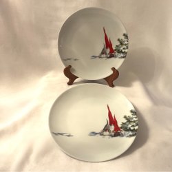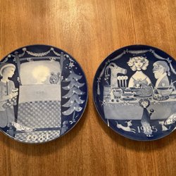 Två tallrikar från Fyrklövern i serien Åsas Tomtebod, 27 cm. Nyskick!