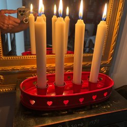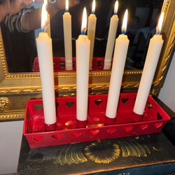 Höjden är 57 cm med kronljus.