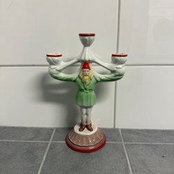 Glas ljusstake i form av en Santa. I fint skick enligt bilder. Ser inga tecken på att den skall ha blivit använd någongång men det är inget jag vet säkert. Ljusstaken har många år på nacken och har legat största del på ett lager
