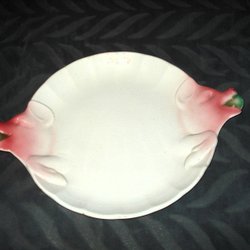 En röd trä ljusstake för tre ljus. Handmålad med blommönster. Lite nött här och där. Men ack så charmig. Passar till vanliga antikljus. den här är tom signerad.