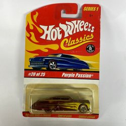 Hot Wheels Purple Passion, en samlarbil i originalförpackning. Perfekt för Hot Wheels-entusiaster och samlare.
