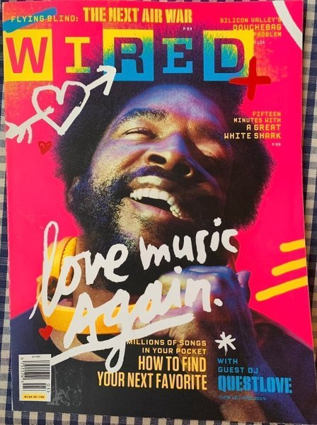 Tidningen Wired från mars 2014 med Questlove på omslaget. Innehåller artiklar om ”The Next Air War”, Silicon Valleys ”Douchebag Problem”, ”How to find your next favourite - with guest DJ Questlove” och ”Fifteen Minutes With A Great White Shark”