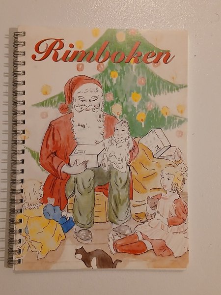 Rimboken är en charmig bok med jultema, perfekt för att sprida julglädje. Boken har en spiralbindning och innehåller illustrationer av jultomten som delar ut presenter till barnen framför en julgran.