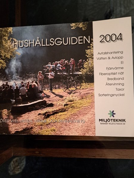 HUSHÅLLSGUIDEN från 2004, utgiven av MILJÖTEKNIK RONNEBY MILJÖ & TEKNIK AB. Innehåller information om avfallshantering, vatten & avlopp, el, fjärrvärme, fiberoptiskt nät, bredband, återvinning, taxor och sorteringsnyckel.