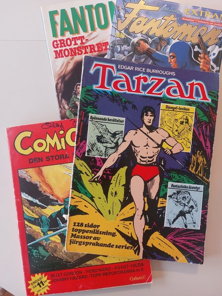 Album: Fantomen 1978 och 2003. Comics 6 (1974). Stora Tarzan-boken 2 (1972).