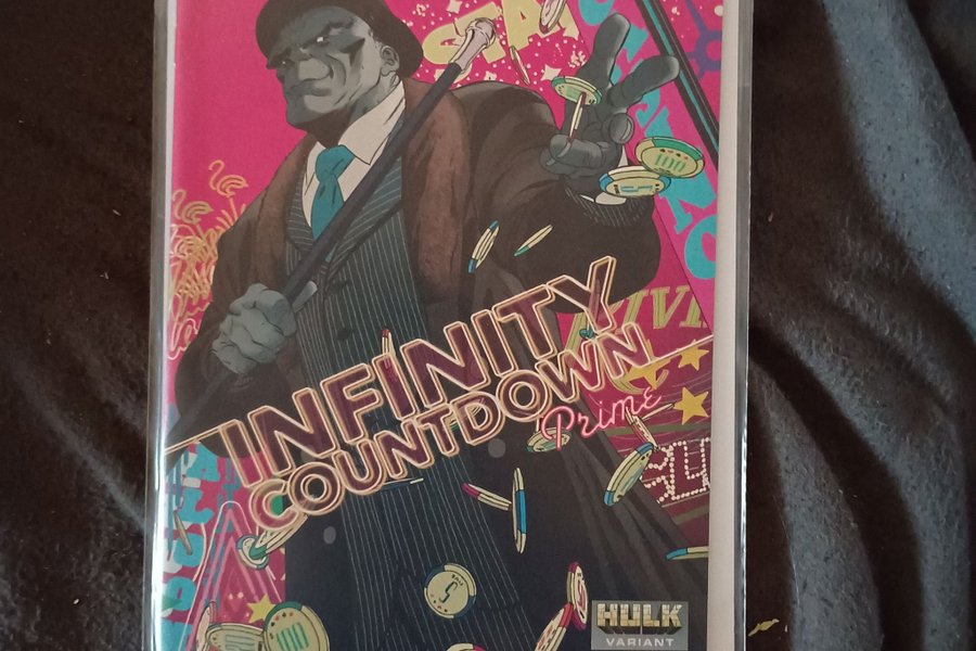 Tegneseriehæfte "Infinity Countdown Prime" fra Marvel Comics, udgivet i 2018. Hulk Variant Edition. ISBN: 759606089642.