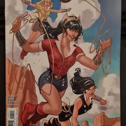 Written by Marguerite Bennett. Art by Marguerite Sauvage. Cover by Terry Dodson and Rachel Dodson. The Bombshells are back in an all-new series! As our new tale begins, the year is 1943, and Wonder Woman is called to Arizona for help by two young girls named Cassie Sandsmark and Donna Troy! The girls' friends and families are being displaced from their homes and forced into internment camps! To save them, can Wonder Woman fight against the same people she once fought alongside? 32 pages, full color. Rated T