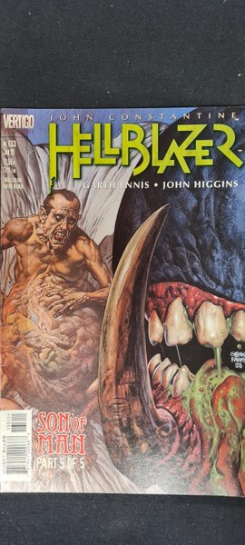 Written by Garth Ennis. Art by John Higgins. Cover by Glenn Fabry. Son Of Man Part Five; All secrets are revealed in the "Son of Man" conclusion, when Little Ronnie unveils his master plan--and shows his true face to a captive John Constantine. 36 pages, full color.