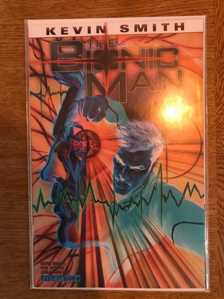 Limited 1 for 20 Sketch Variant Cover by Alex Ross(W) Kevin Smith, Phil Hester (A) Jonathan Lau Colonel Steve Austin is at death's door after the catastrophic crash landing of his experimental aircraft, and even as surgeons struggle to save his life, the shadowy figures in the upper echelons of the espionage service O.S.I. plot to augment him with dangerous, untested bionics. Meanwhile, the entity known as Hull amasses a secret army bent on wiping humanity from the face of the Earth. The only person capable of stopping Hull is Steve Austin, the Bionic Man, but will he survive his own genesis as the world's first cyborg?