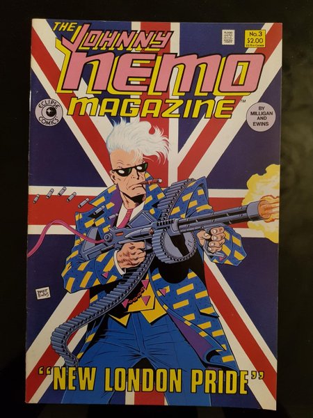 Cover by Brett Ewins. Written by Peter Milligan. Art by Brett Ewins and Steve Dillon. Strange Days presents...The Johnny Nemo Magazine! Featuring: Johnny Nemo in "New London Pride" by Peter Milligan, Brett Ewins and Steve Dillon. Plus: Sindi Shade in an untitled back-up story (part 3 of 3) by Peter Milligan and Brett Ewins.