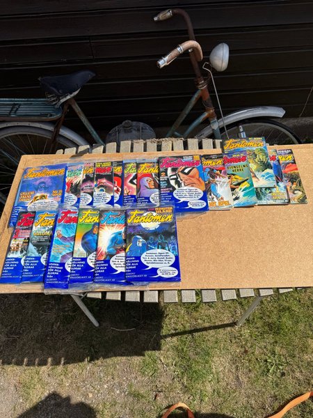 Ett parti med Fantomen-tidningar,