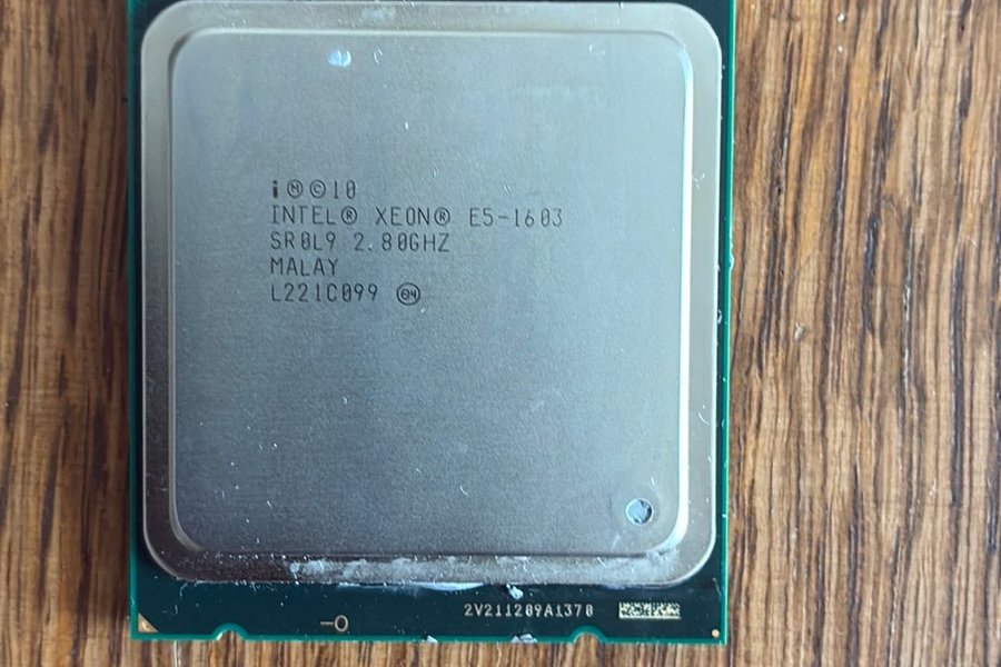 Intel Xeon E5-1603 processor med en klockfrekvens på 2.80GHz. Modellbeteckning SR0L9. 4 cores.