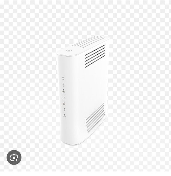 Router i vit design. Enheten har ventilationsöppningar på sidorna och ovansidan. På framsidan finns indikatorlampor.