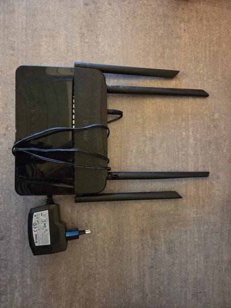 D-Link router med strömadapter, nätverkskabel medföljer. Modell dir 842. Fungerar felfritt.