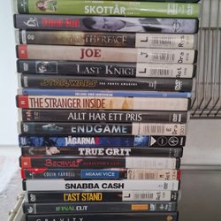 Ett paket med 14 DVD-filmer. Filmerna inkluderar: Gilbert Grape, Det våras för Frankenstein, Från och med herr Gunnar Papphammar, Hummelflugen, Brudens bäste man, The Gatsby, The Tuxedo, The Spy Next Door, Donnie Brasco, Defiance, Tempelriddaren, The Graduate, Minority Report och De fredlösa.