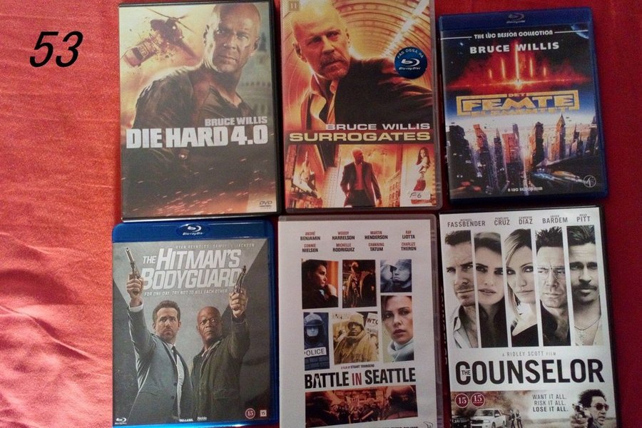 die hard 4.0..surrogates..det femte elementet..the hitmans bodyguard..battle in seattle..the counselor