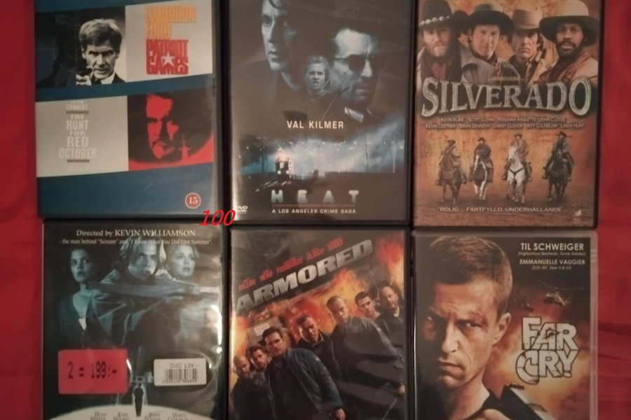 patriot games..the hunt for red october..heat..silverado..teaching tingle..armored..far cry