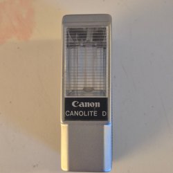 Kamera med en svart rektangulär kropp. Den har en frontpanel med en cirkulär design som omger linsen. Designen inkluderar texten "UNIBOX" längst ner och bokstäverna "T" och "M" nära toppen.