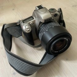 Säljer en snygg svart Nikon systemkamera med ett objektiv 1.8/50 mm och en rem. Inte använd på flera år men slutaren låter okej. Ljusmätaren satte dock inte igång när jag provade med batteri, så den kan vara kaputt.