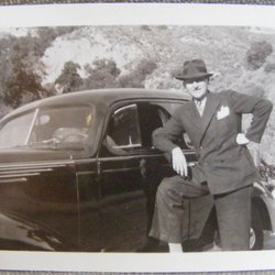En MAN med TJUSIG AUTOMOBIL "En solig morgon,Hollywood 1931" SKRIFT baktill på FOTOGRAFI i GOTT SKICK
