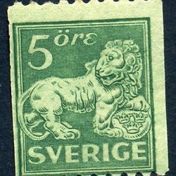 Stämplat Stående lejon 10 öre grön F.144c med CX (900:-)