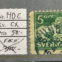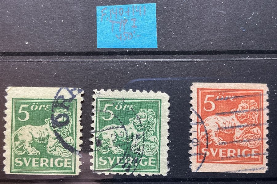 3 st stämplade stående lejon 5 öre F.140 & 141 typ I (450:-)