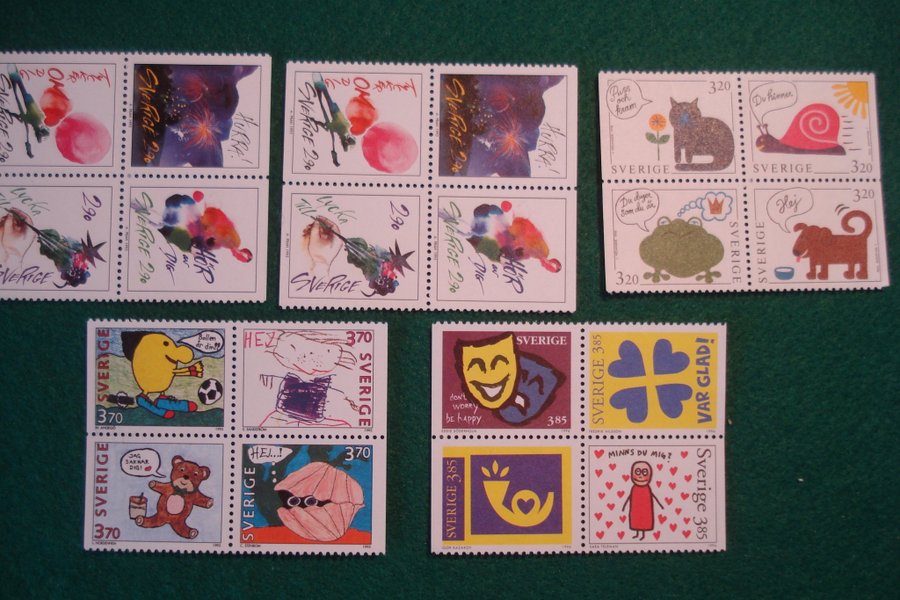 Tjugo stycken gummerade valörmärken utgivna år 1993, -94, -95 och-96