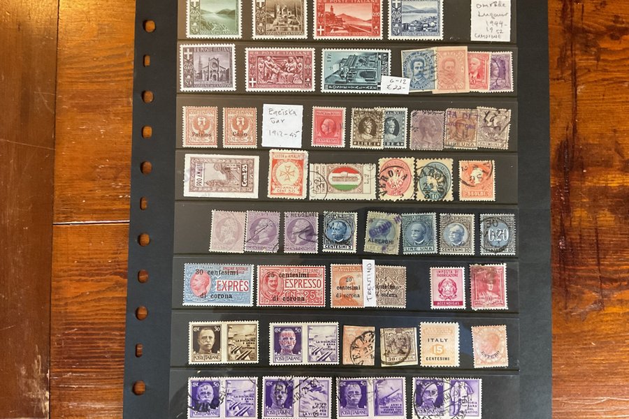 Urtaget ur ett stort album och det verkar vara lite äldre frimärken