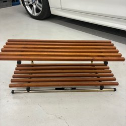 Hatthylla i retrostil med två hyllplan och stång för galgar. Perfekt för hallen eller sovrummet.