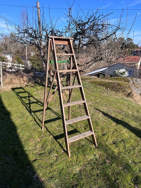 Mormors gamla stege i trä med sju steg. Ca 1940-tal. Ursprungligen för trädgårdsarbete eller liknande. Troligen från Söderhamn.