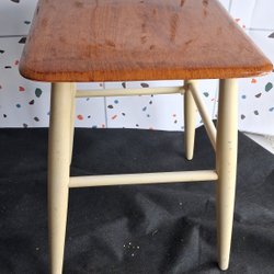 Fin dekorativ pall med vackert framhävt trämönster och mörkgröna ben.