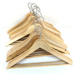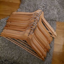 Tre klädhängare i ek, perfekta för hatthyllan. De är gjorda av mindre bitar, vilket gör varje galge unik. De är i mycket gott skick.