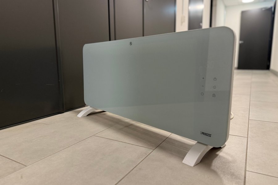 Värmeelement från Princess. Modellen är en konvektor med en effekt på 2000W. Den har en touchskärm för enkel justering av inställningar. Värmeelementet är utrustat med överhettningsskydd och kan användas fristående.