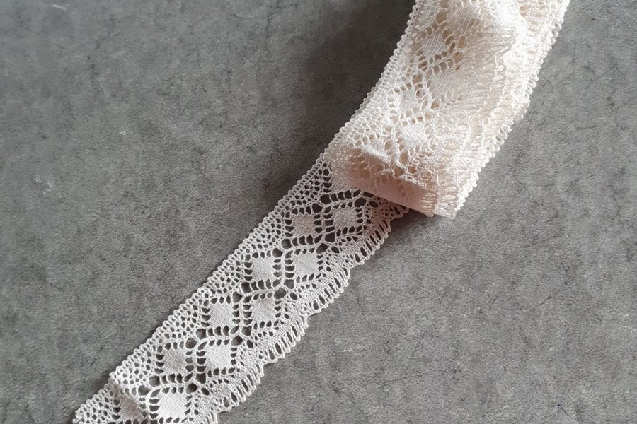 4 1/2 meter spets. Helt ny och oanvänd. Bredd 6 cm.