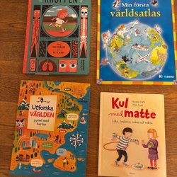 Två barn-resväskor från Samsonite. Handtaget kan fällas ner och man kan även ha dem som ryggsäck. Bra skick eftersom vi inte rest så mycket och eftersom de är av bra kvalitet, dock är ett dragkedje-fäste av på den röda väskans små ytterfack men det går bra att öppna/stänga ändå.