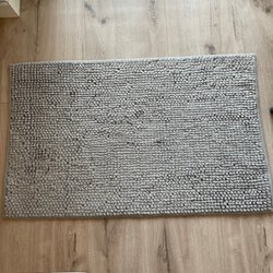 En ljus badrumsmatta med struktur. Perfekt för att addera komfort och stil till ditt badrum.