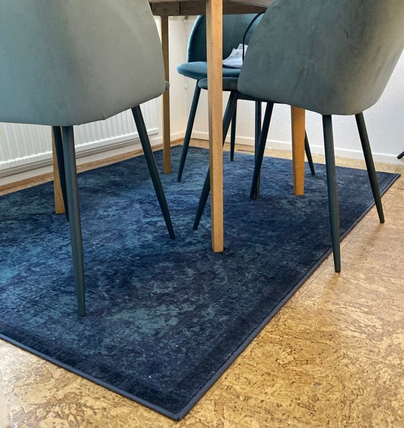 En blå matta som passar perfekt under matbordet eller i vardagsrummet. Mattan har ett fint mönster. Är mitt i flytt, men självklart dammsuger jag mattan innan avhämtning.