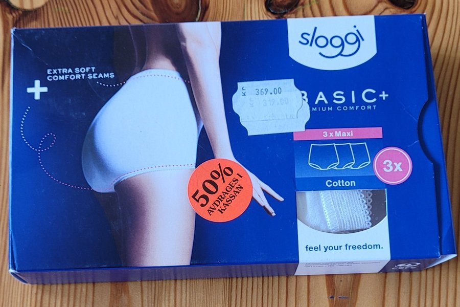 Sloggi Basic+ trosor, 3-pack Maxi modell. Extra mjuka komfortsömmar.
