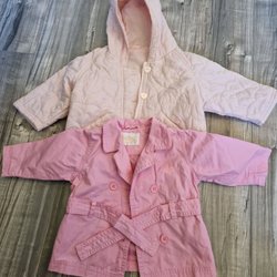 Rosa topp med korta puffärmar och knäppning framtill.